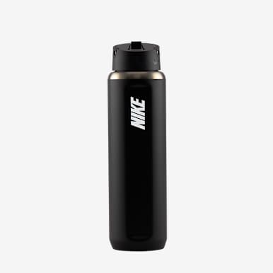 Nike’s standard water bottles come in a variety of sizes to suit your needs. Nike currently offers water bottles in 12-, 24-, 40- and 64-ounce varieties. A water bottle works well if you can stash it in the treadmill cup holder, in the car, along the route or on the side of the track to access it when it’s time to hydrate — before, during or after the run. Stainless steel styles help keep fluids colder for longer, while BPA-free plastic water bottles are lightweight and durable. Some bottles have straws while others have flip-tops. Nike also offers a shaker bottle, which can be helpful for mixing in electrolyte tablets or powders.