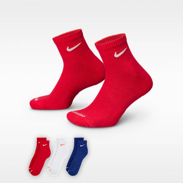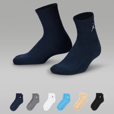 Ankle socks can be a great all-purpose, everyday sock for kids. They’re designed to cover the ankles, helping keep skin from rubbing against the back of the shoe. Nike Dri-FIT ankle socks for kids offer sweat-wicking benefits, cushioning underfoot, mesh at the top of the foot for ventilation and an arch band for snug support.