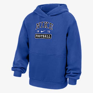 A Nike football hoodie is a great way to show off a love for the game. Crafted with cozy fleece materials, Nike football hoodies come in a range of styles, some featuring team-specific logos and others sporting general football graphics and designs.