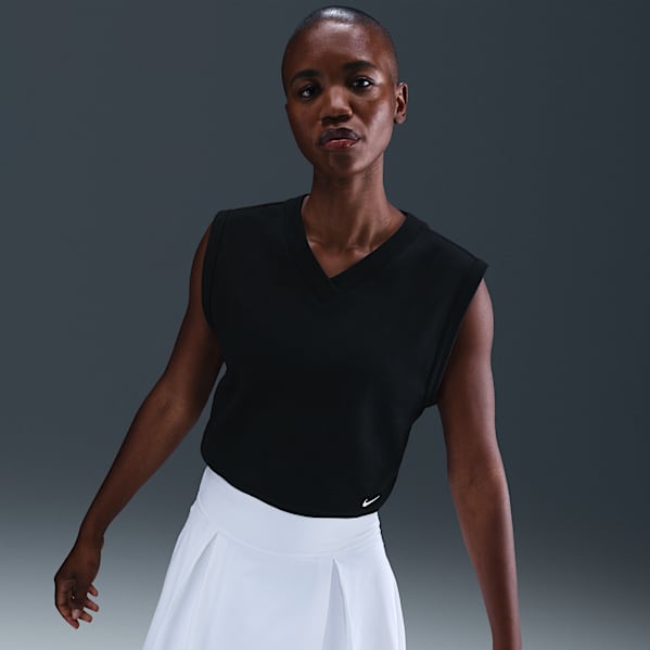 The ultimate warm-weather golf outfit unquestionably centers around a sleeveless polo shirt. Women’s golf shorts are a classic and tailored choice when a skirt isn’t the mood. Fabric is the most important detail when selecting these pieces. Choose versions crafted from breathable, moisture-wicking material to stay comfortable and in the zone. Modern golf sneakers lend a minimalist finish with plenty of traction from the tee box to the green. Don’t forget the sunscreen.