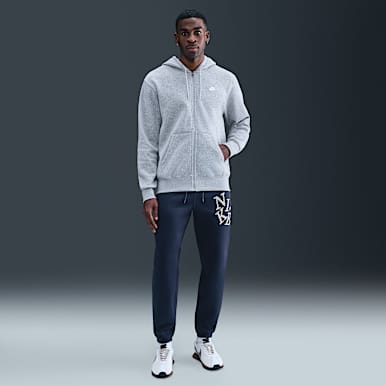 - Nike Club Fleece: Lean into comfort in a pair of Nike Club Fleece bottoms, which range from wide-leg fits to classic styles with elastic ankle cuffs. Some feature details like cargo pockets or sewn-in patches.