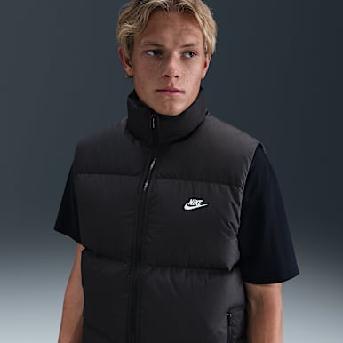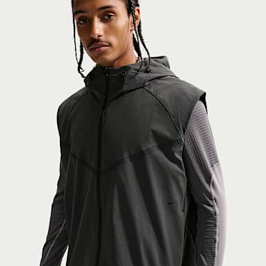 For example, the Nike Sportswear Therma-FIT Legacy Men's Vest combines elements of a puffer jacket and a windbreaker, resulting in a durable, water-repellent vest with snap-front pockets and cozy fleece lining.
