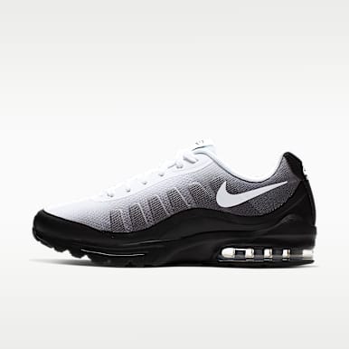 Typisch für den Air Max 97 sind das Wellenmuster im Obermaterial, das an fließendes Wasser erinnert, und die durchgehende, reaktionsfreudige Nike Air-Dämpfung. Der Air Max 95 ist ein Chunky-Sneaker, den man an seinem charakteristischen Groove-Design an den Seiten erkennt. Dieser Schuh feierte sein Debüt 1995 mit einer schwarzen Sohle, was zu dieser Zeit sehr außergewöhnlich war.