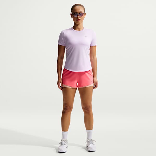 With numerous pairs of Nike women's running shorts available, you're bound to find a pair that has the features you need with a look to match your style. Nike women's running shorts come in a variety of colours—from basic black and white to Hot Pink, purple and navy—and prints, too.