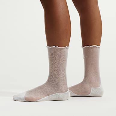 Designed for training, Nike Everyday Plus socks have extra cushioning under the heel and forefoot to provide comfort with every lift, push and pull. And, a band at the arch provides support underfoot. The Dri-FIT material (cotton, polyester and elastane) keeps your feet dry and prevents moisture from accumulating in your shoes. Choose from crew to ankle to no-show lengths.