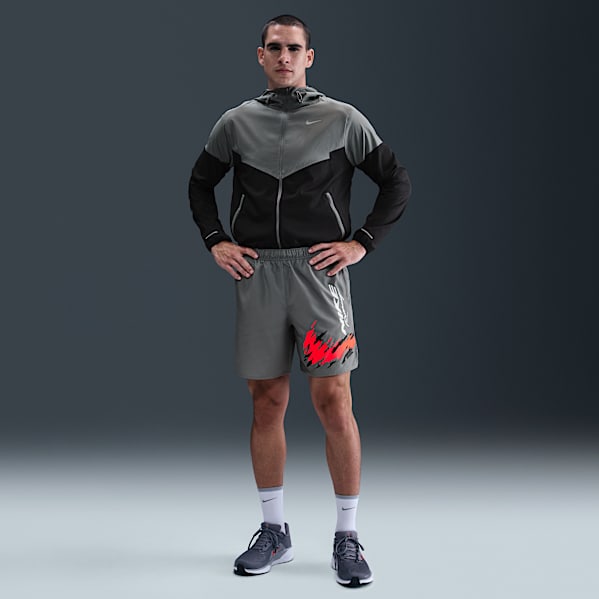 On the men's side, quick-drying volley shorts come in different lengths (from a 13cm (approx.) to a 20cm (approx.) inseam) and feature built-in mesh briefs and adjustable drawcords.