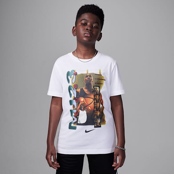 Geen idee wat je cadeau moet geven aan een jongen? Een T-shirt met graphics is altijd een goed idee. Of hij nu na school naar het basketbalveld gaat of thuis zijn huiswerk gaat maken, met een Nike T-shirt met graphics kan hij alle kanten op.