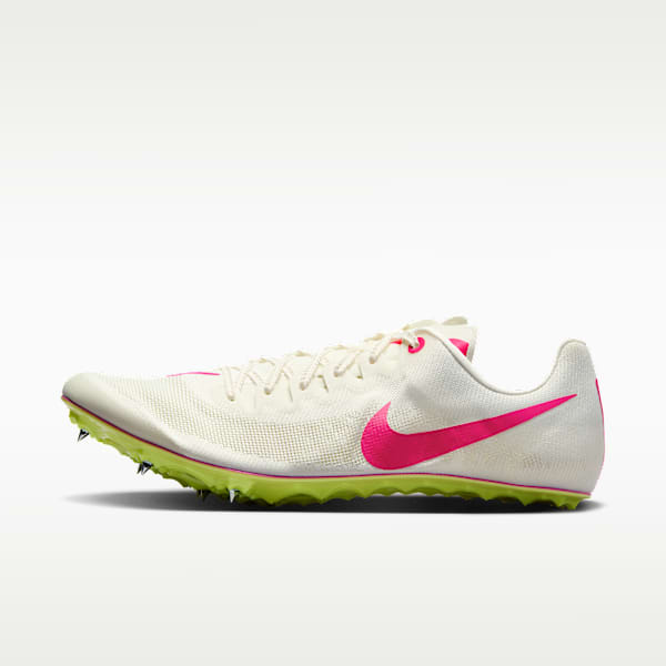 Nike track spikes voor springonderdelen zoals de hink-stap-sprong zijn voorzien van metalen spikes die de atleet tijdens de aanloop veel grip geven. Ze zijn gemaakt met een vrij stijve plaat in de zool die voor een stabiele basis zorgt bij de afzet, maar zijn ook voorzien van demping in de middenzool om de schokken van de landing op te vangen.