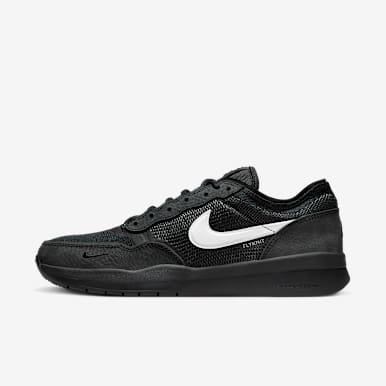 Durable black styles are made from lightweight and breathable materials to help keep your feet cool, while traction underfoot helps maintain balance and control on the board. Some black Nike SB shoes feature canvas uppers with suede accents, while others are designed with soft, premium leather.