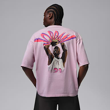 Graphic T-shirts from Nike come in a variety of styles, fabrics and shades of pink, including peach, fuchsia, pink foam and more. Shop from varieties with eye-catching graphics and special stitching. Other varieties, like the Dri-FIT Training T-Shirt, are engineered specifically for sport, with sweat-wicking technology and light, ventilated fabric.