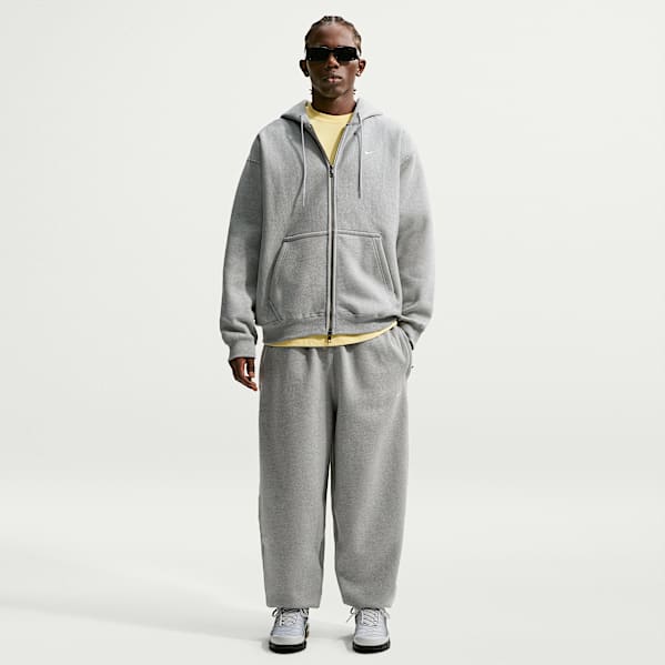 When a day off work or school rolls around, embrace chill vibes by keeping your choice of trousers comfy. A pair of fleece joggers paired with a structured chore coat and retro-tinged Air Pegasus sneaker is a combination that is just the right amount of stylish, while still leaning into the relaxed mood of a lazy day. This is how to style grey tracksuit bottoms in an unexpected-yet-effortless way.