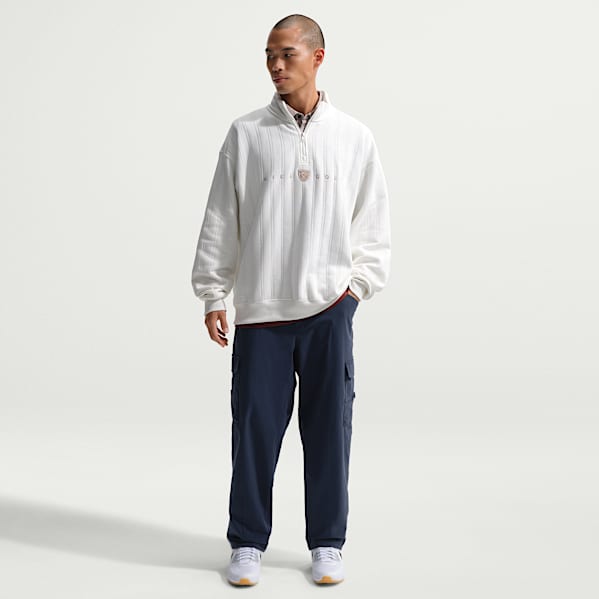 Les tenues de golf pour homme sont généralement inspirées de classiques. Pourquoi ne pas ajouter des pièces d'inspiration streetwear pour une touche rafraîchissante ? Pour commencer, un sweat à capuche simple en tissu haute performance est un choix confortable qui va avec tout. Et il a l'avantage de créer un look un peu plus décontracté qu'un pull, sans manquer pour autant de sophistication. Un pantalon à cinq poches de style denim jouera aussi la carte du moderne cool. Son tissu extensible est idéal pour ton mouvement de hanches. Et rien de plus stylé que des chaussures de golf montantes et un haut à boutons-pression anti-transpirant pour sublimer ton look.