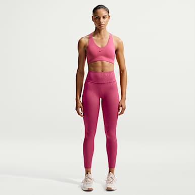 Nike offers non-padded and encapsulation sports bras, all with elevated support. Encapsulation bras individually surround and support each breast, providing a natural shape and compression to reduce bounce. While some people appreciate the shaping that padding provides, others prefer a non-padded compression bra. Both options can offer high levels of support.