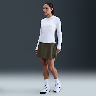 Nike tennis skirts and dresses are crafted with lightweight, sweat-wicking materials and often contain snug, built-in shorts to withstand tough slides and help prevent chafing. These skirts offer breathability and ease of movement suitable for top athletes and novices alike.