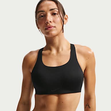Von klassischen Racerback-Designs über Styles mit hohem Ausschnitt bis hin zu BHs mit Verschluss vorne – viele Nike Sport-BHs mit mittlerem oder starkem Halt sind hervorragend für intensive Workouts wie CrossFit geeignet.