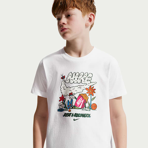 Stumped on where to start on gift-giving for the boys in your life? A graphic tee is an option guaranteed to be a big hit. When school's over, it doesn't matter if he's headed to the basketball court or home to do his homework, Nike's graphic tees for boys will be a staple in his everyday wardrobe.