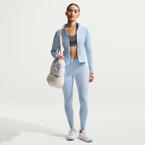 If you usually stick with classic black leggings, consider an outfit that incorporates a pair of Nike Zenvy leggings—a comfortable staple for a casual weekend brunch or a weeknight dinner out. The easiest way to instantly dress up a simple outfit is with a statement-making coat. In this case, the Nike furry Swoosh jacket is an instant outfit-maker. The best shoes to wear with leggings and a bold coat are a colourful pair of sneakers for a final punchy touch.