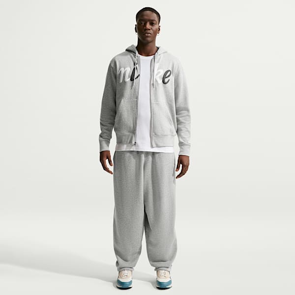 When a day off work or school rolls around, embrace chill vibes by keeping your choice of trousers comfy. A pair of fleece joggers paired with a structured chore coat and retro-tinged Air Pegasus sneaker is a combination that is just the right amount of stylish, while still leaning into the relaxed mood of a lazy day. This is how to style grey tracksuit bottoms in an unexpected-yet-effortless way.
