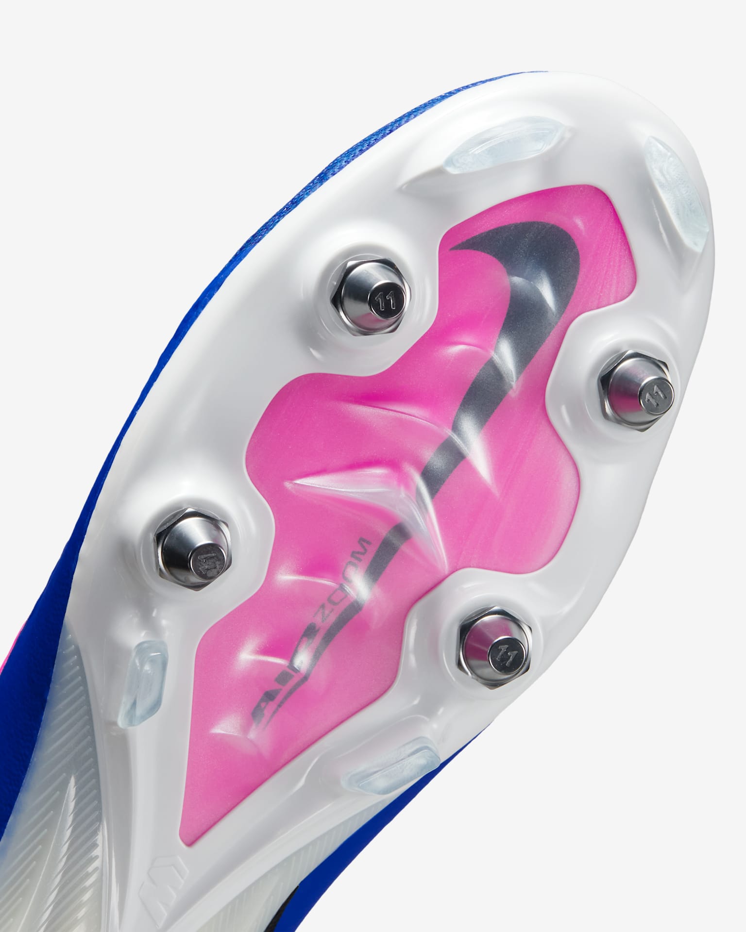 La struttura di trazione con motivo a onde è formata da una serie di tacchetti a cascata, che coinvolge una superficie maggiore dell'unità Air Zoom per un'aderenza sempre ideale. Il tacchetto più grande ha la stessa altezza dei nostri tradizionali tacchetti medi, quindi la trazione non è compromessa. Abbiamo abbinato la trazione a onde con lamelle e tacchetti con motivo a V evoluti per aiutarti a fermarti in un attimo durante i cambi di direzione fulminei.