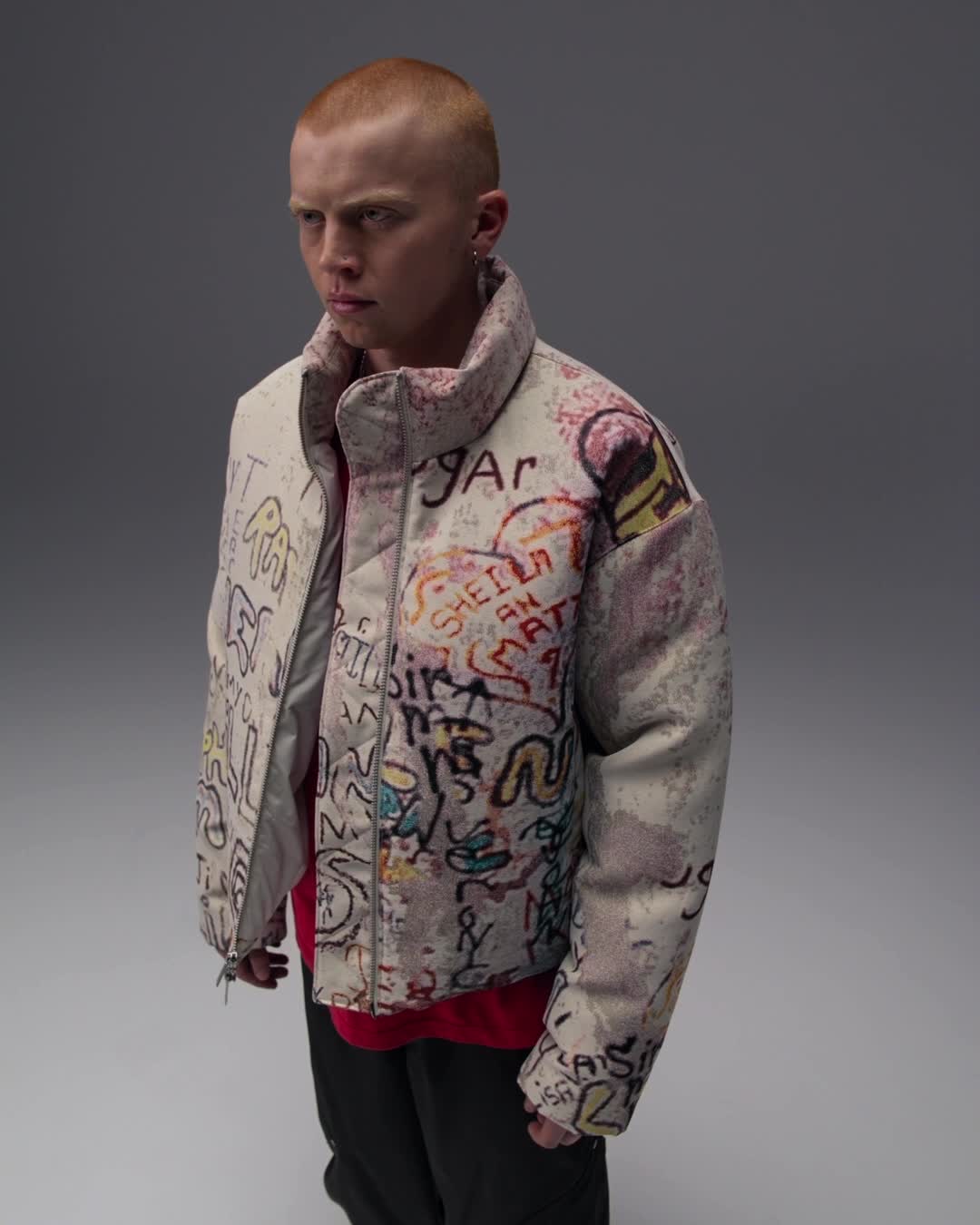 Wenn die Temperaturen sinken, ist es an der Zeit, die Puffer-Jacke rauszuholen. Dieses Modell hat einen durchgehenden Print, der von einem legendären MJ-Poster inspiriert wurde, und ist mit einer Daunenisolierung für kuschelige Wärme gefüllt. Schlüpf hinein und bleib angenehm warm.