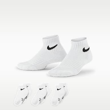 Los calcetines de calidad son una parte importante de los looks de tus peques. Los calcetines evitan el sudor, el mal olor y las ampollas en los pies. Además, puede resultarles divertido escoger su color o estampado favorito para ponérselos con sus zapatillas para la vuelta al cole. Si buscas los mejores calcetines para niños y niñas, echa un vistazo a la selección destacada de Nike, clasificada según el tipo de calcetín y la longitud.