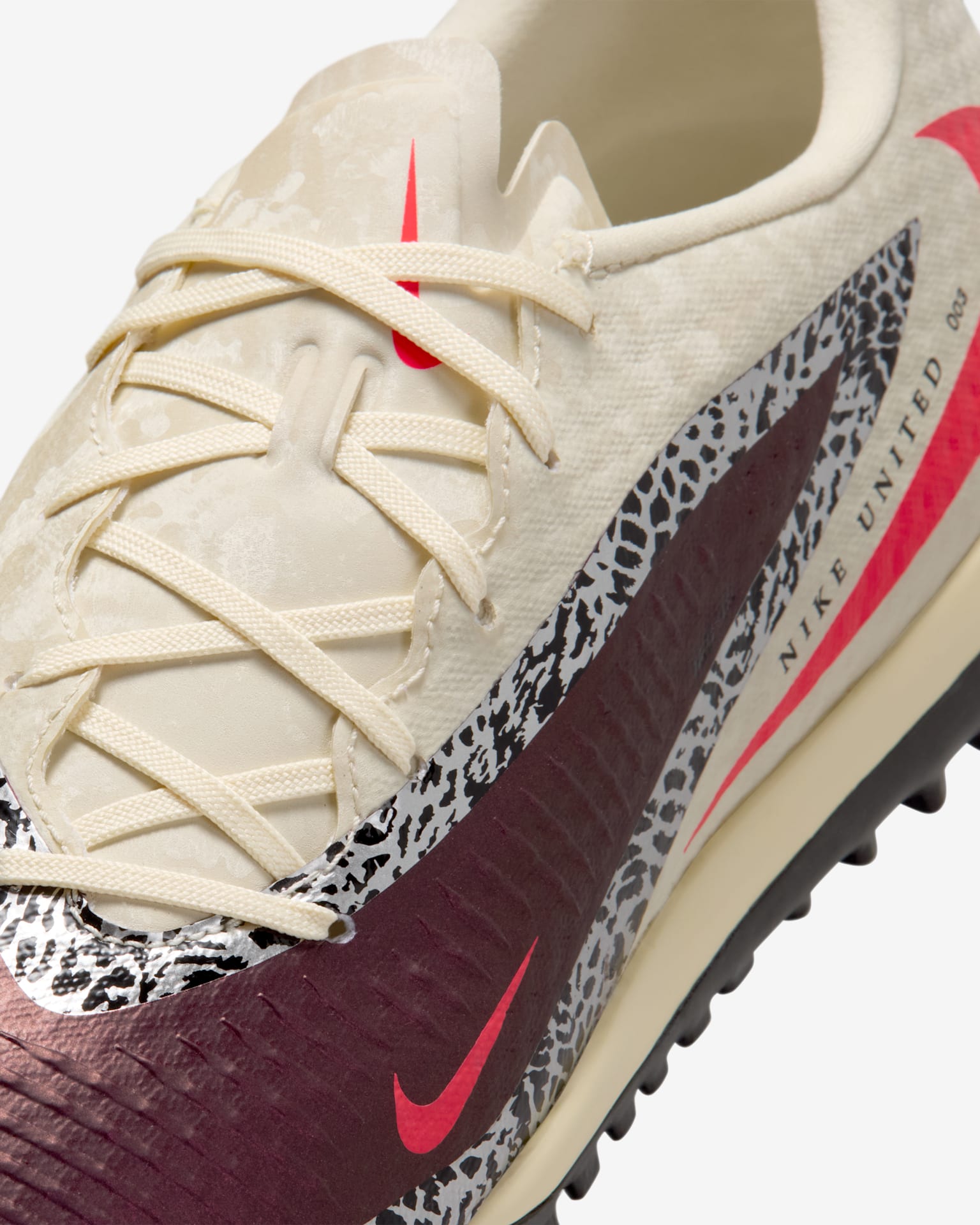 La collection Nike United célèbre les athlètes à la précision imparable comme Sophia Wilson et Deyna Ratellanos. Nous avons associé des tons bordeaux riches à des graphismes inspirés de l'imprimé animal pour représenter leur approche agressive sur le terrain et leur capacité à dépasser les limites du possible.