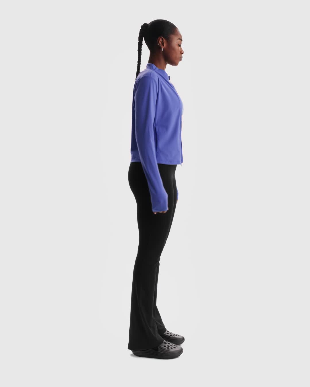 - The absence of a front seam helps keep the fabric from riding up for a smooth fit.