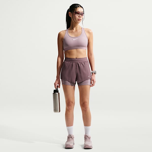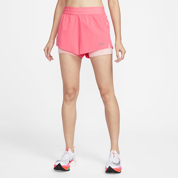 With numerous pairs of Nike women's running shorts available, you're bound to find a pair that has the features you need with a look to match your style. Nike women's running shorts come in a variety of colours—from basic black and white to Hot Pink, purple and navy—and prints, too.