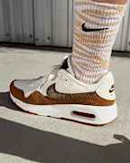 Intertwining functionality with fashion, the Air Max SC SE lets you bring chic style outdoors. From rustic colours to desert-inspired textures (including faux snakeskin), it delivers the perfect amount of wild. Textured laces nod to traditional hiking boots, while the Waffle outsole and visible Nike Air keep the coveted '80s look you love. Where will your adventure take you?