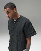 Time to go, and this is what you're wearing. With subtle branding and a tonal, textured design, this baseball jersey-inspired top is minimalist without being boring. It's made from puffy lightweight nylon material that moves with you as you cruise through your day.
