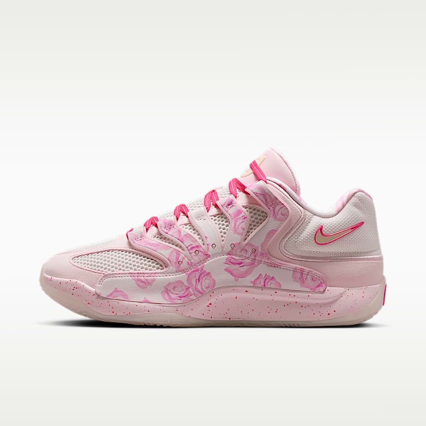 Kevin Durant is a true hooper. He'd be just as happy playing casual all afternoon as he would be dropping 40-pieces in the playoffs. When your avid appetite for the game can't be satisfied, lace up in the KD16s. Nike Air and Zoom Air work together to provide speed and stability for all four quarters, while the upper is lower and the overall load is lighter compared with the previous iteration. It's ideal for the hoopaholic who can't say no to just one more game. This special all-pink design honours KD's aunt who passed away from lung cancer in 2000, but inspires us all to continue to fight to find a cure. With its extra-durable rubber outsole, this version gives you traction for outdoor courts.