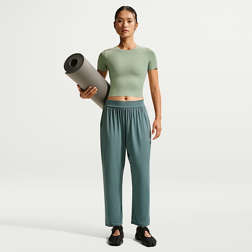Nike One works for it all. Midweight and peachy soft, these leggings stretch with your every move and dry quickly. Non-sheer with a high waist, they help keep your bottom covered no matter how deep you bend.