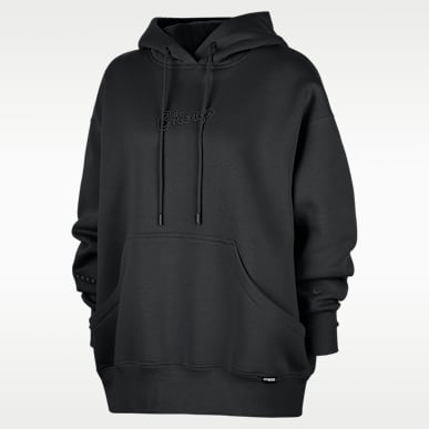 These oversized graphic hoodies feature the Swoosh Fly logo—the symbol of Nike Women's Basketball. It's a throwback to the 1980s Nike Basketball advertisement that asked, "Who Said Woman Was Not Meant to Fly?" Sport this graphic on a marbled sherpa-fleece pullover or a zip kangaroo-pocket hoodie.