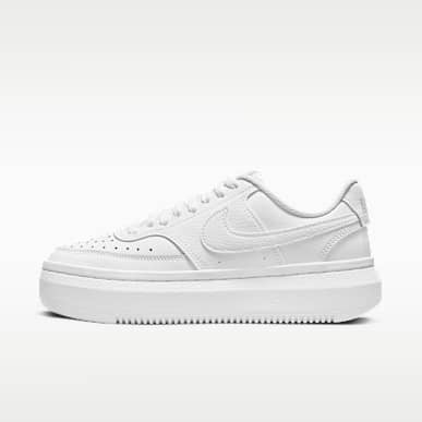For a simple, all-white platform sneaker, try the Nike Court Vision Alta. While this shoe comes in other colourways, the all-white leather sneaker is timeless. The lifted foam midsole and sculpted heel provide comfort for walking and everyday wear.