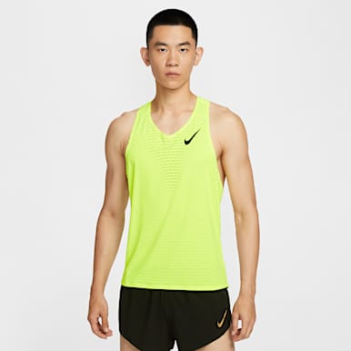 レース当日に着用するタンクトップを探しているなら、Nike Aeroswiftコレクションのレース用シングレットをチェックしよう。 すっきりとした軽量デザインで、前から後ろへのサイドの縫い目は摩擦が軽減されるよう設計されている。