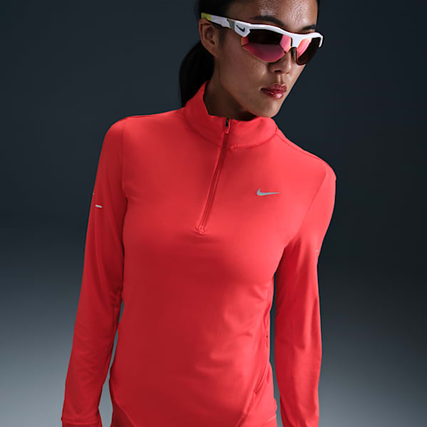 - ナイキ Dri-FIT スウィフト エレメント UV:このルーズフィットのウィメンズシャツは、サムホールで紫外線をブロックする範囲を広げたり、運動中の袖のずれを防止したりできる。