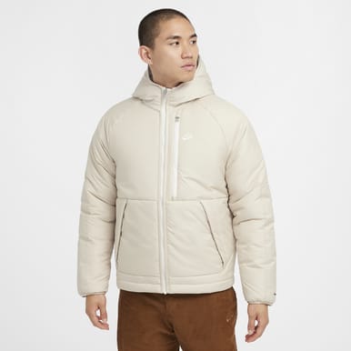 Nike Therma-FIT Repel素材のジャケットは悪天候に対応し、雪、みぞれ、雨などの侵入を防ぐ。 また、断熱性が高く、体温を利用してフードから裾まで暖かい状態が持続する。