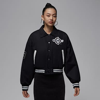 ジャケットのラインナップに含まれるJordan Brand × Levi’s ピナクル バーシティ ジャケットは、大胆なスタイルで個性を演出するアイテム。メルトンウールのボディ、レザースリーブ、キルティング加工のサテン裏地を採用し、雄牛に乗るカウボーイを描いたパッチでマイケル・ジョーダンのシカゴ・ブルズにおける功績を称えます。
