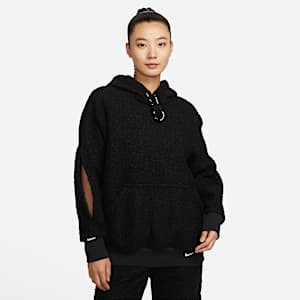 リサイクル素材を50~75%以上使用したオーバーサイズのセーターには、"Tuff Knit" フリースやフレンチテリーなどのさまざまなスタイルがある。 無染色素材はナチュラルな雰囲気を醸し出す。シューズ製造工程で発生する廃棄物から作られたリサイクル素材のNike Grindをスウッシュロゴやドローコードチップに使用しているオーバーサイズのパーカーもある。