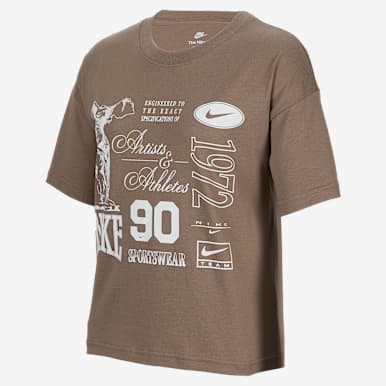 Discover dozens of designs to match her personal style. Some feature playful graphics, while others sport an always-classic Swoosh. Pick a standard fit or a boxy cropped tee, which pairs well with leggings or high-rise pants and provides extra airflow on warm days.