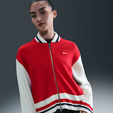 For example, the reversible Nike Sportswear Women's Varsity Bomber Jacket features just the right amount of lightweight padding, so you still have enough room to layer a hoodie or pullover underneath. The full-length zipper keeps out gusts of cool, outside air.