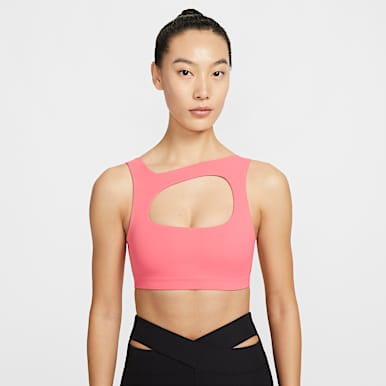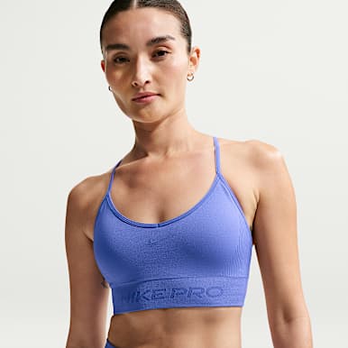Nike medium-support sports bras like the Nike Swoosh offer a simple racerback design that promotes free movement, as well as breathable Nike Dri-FIT fabrics that wick away sweat before it can dampen your base layers.