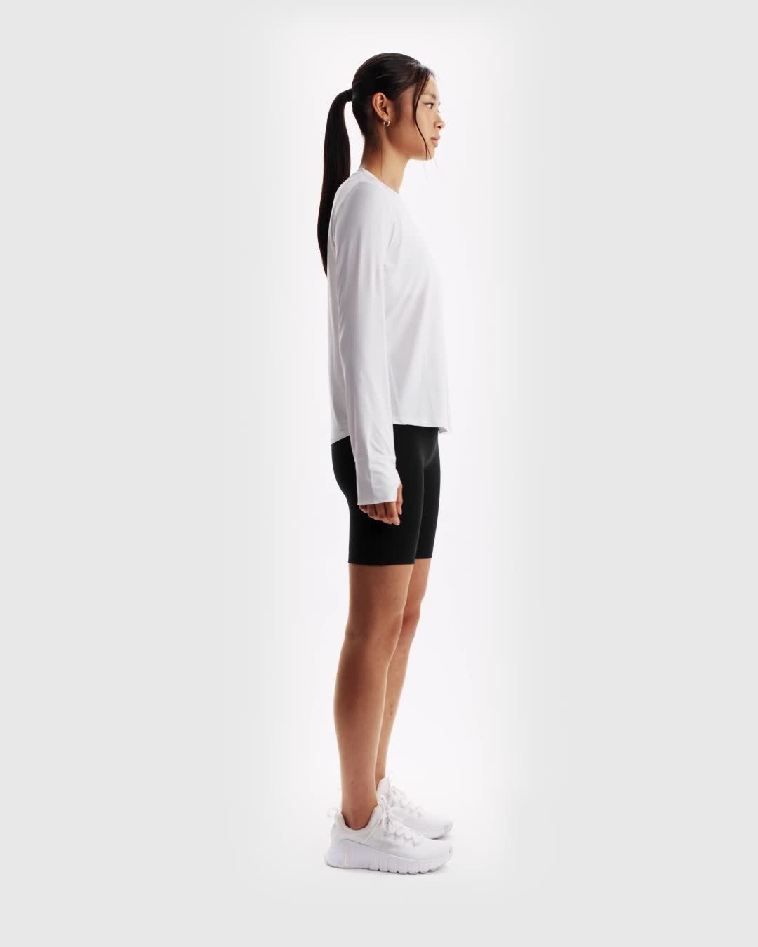 A crew neckline adds a classic, timeless vibe to the top. The curved hem and elegant seam lines throughout the design keep the look sleek, so you can wear it as the first layer—or the only layer.