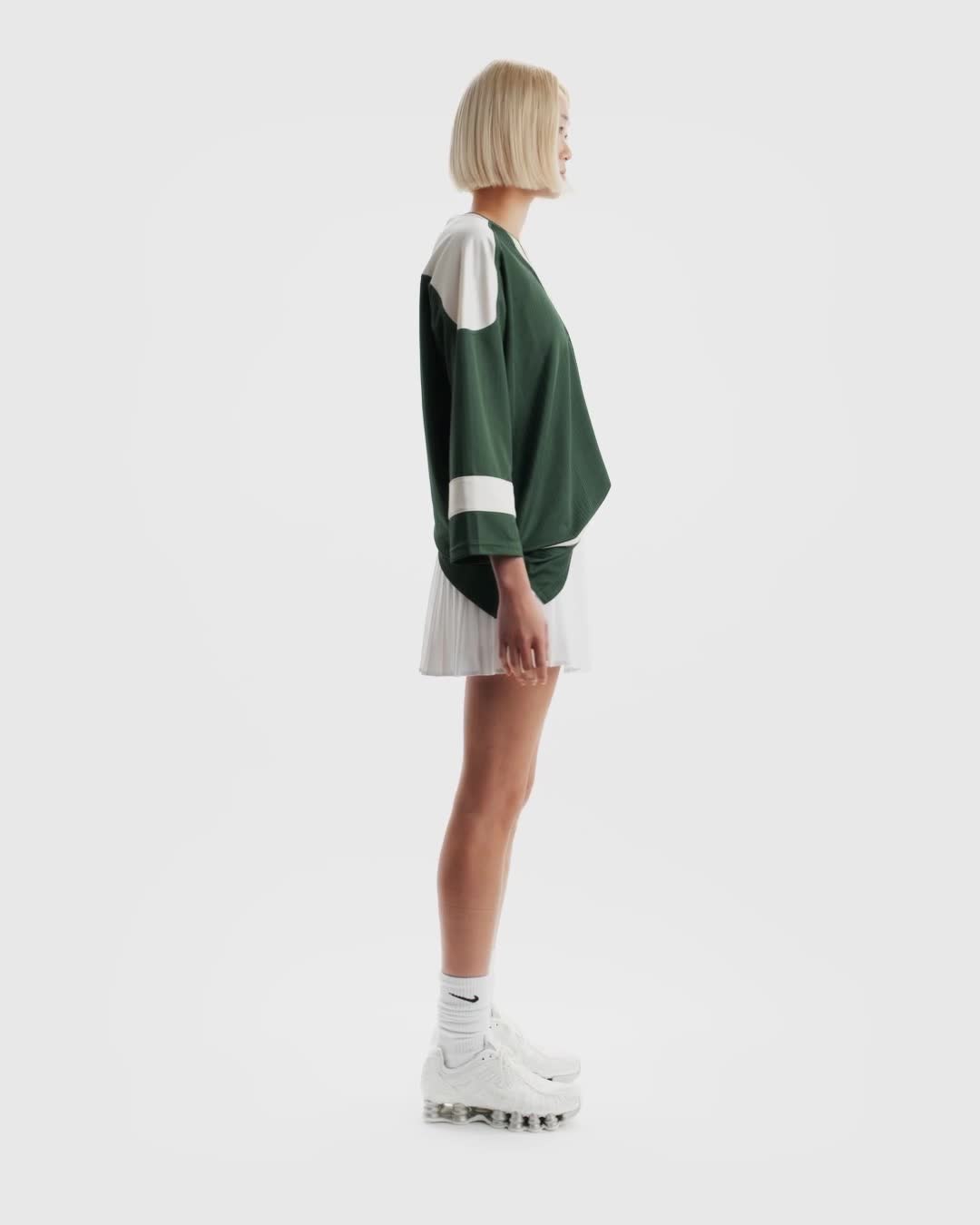 This jersey-inspired tunic elevates the look of sport by combining jacquard stripes and shiny panels with an extra roomy fit and dropped shoulders.