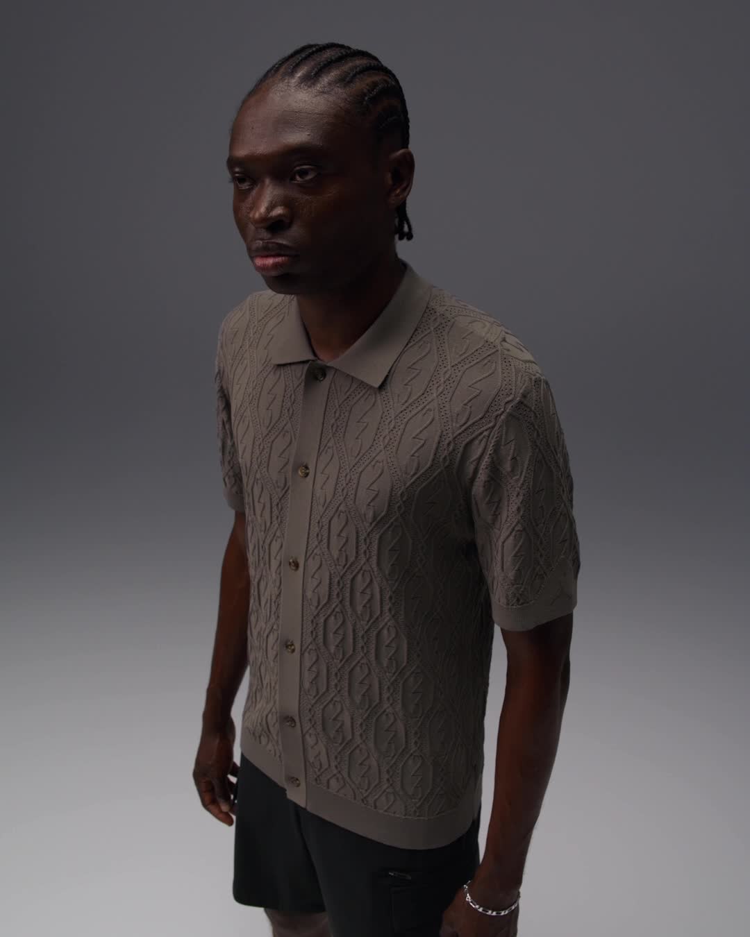 ゴルフコースでの着用に最適なボタンダウンのトップス。軽量のニット素材を使用しました。18ホールが終わるまでずっとさわやかに過ごせます。デザインでは、どこまでもJordanスタイルを追求しました。