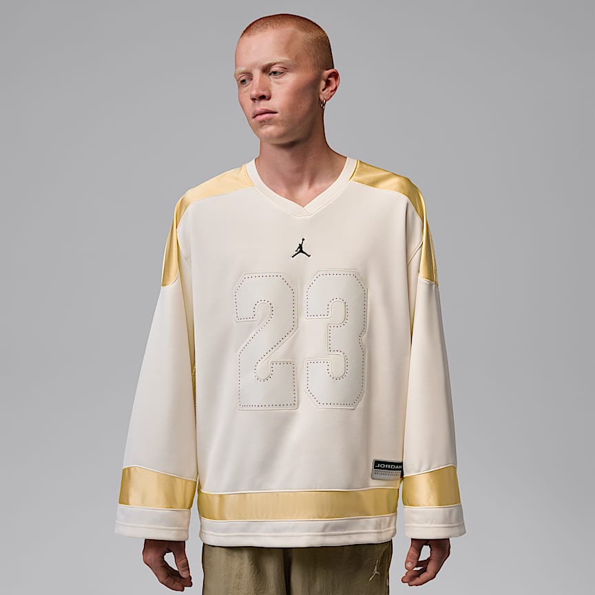 ストリートでも活躍するフィールドスタイル。通気性に優れたメッシュ素材と光沢のあるアクセントが特徴のオーバーサイズ ニットトップス。フットボールジャージーからヒントを得たデザインで、大胆かつスポーティーなスタイルを演出します。