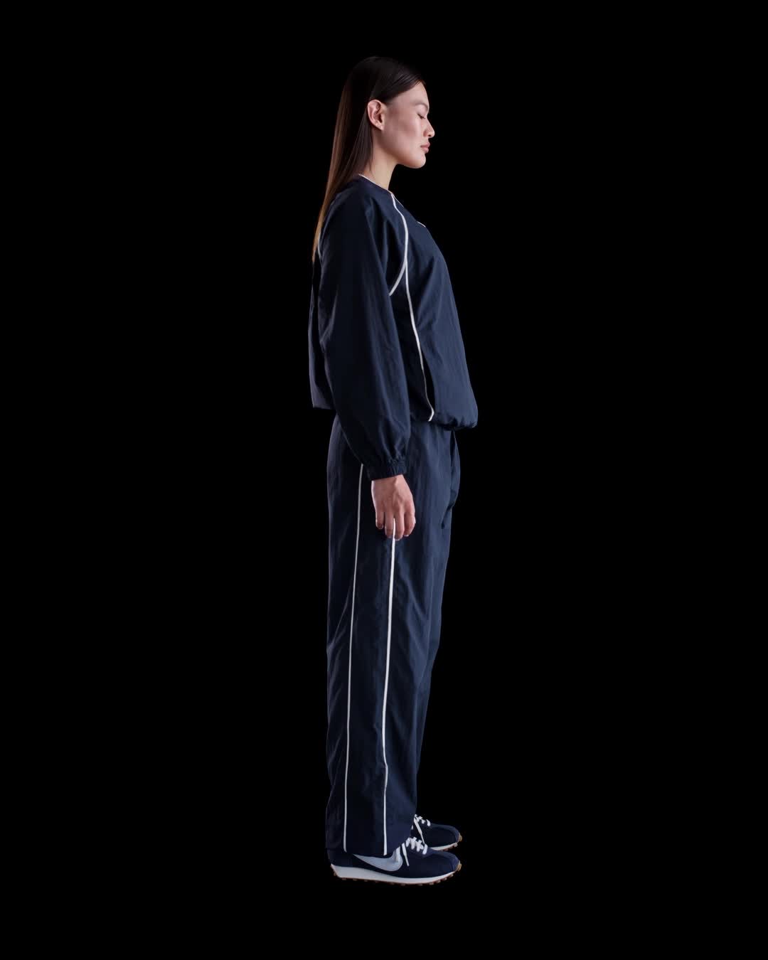 軽量の撥水性に優れたタフタを使用したトップス。スポーツに根ざしたスタイルを演出します。伸縮性のあるウエストで大きめのフィット感を引き締めたデザインです。