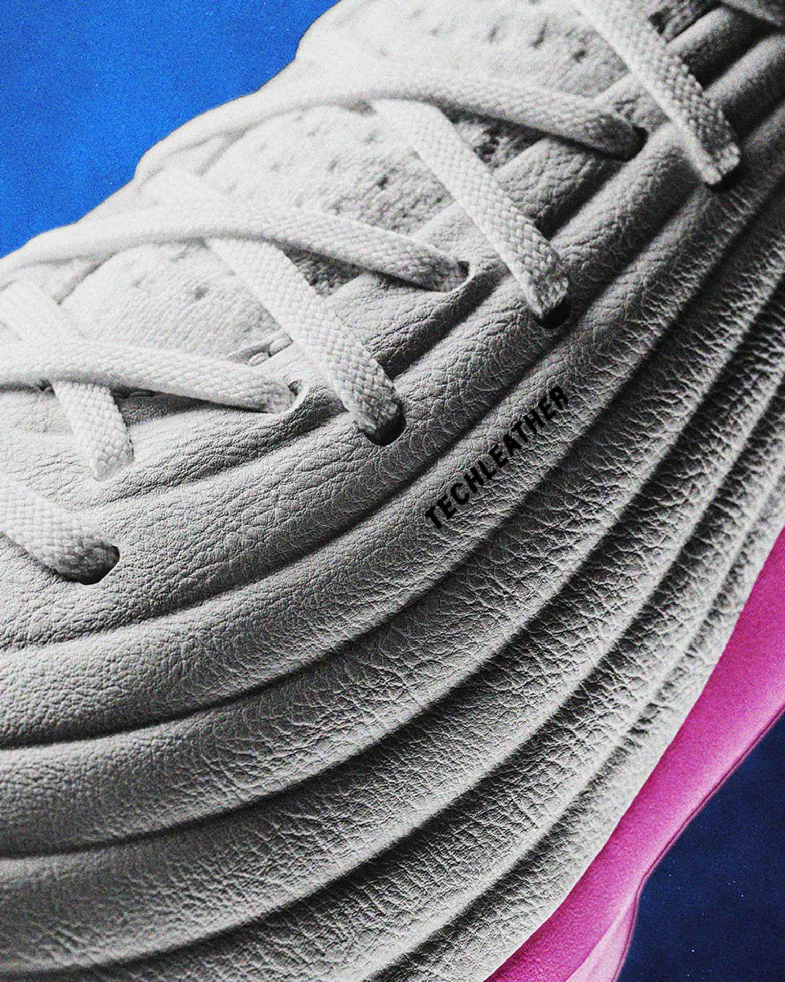 クリエイティブなドリブルをするのに重要なアッパー部分には、非常に柔らかいTechLeather素材を使用。天然皮革に比べて、濡れた状態でも乾いた状態でも一貫したタッチを実現します。さらに、成型ラインがボールタッチの感覚を向上させます。