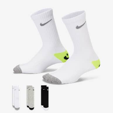 나이키 에브리데이 맥스 쿠셔닝 양말은 두툼한 테리 소재 밑창으로 편안한 착용감을 제공하며, 발바닥의 고 마찰 원사가 미끄러짐을 최소화해 줍니다. 드라이 핏 기술이 적용되어 러닝 중에도 발을 건조하고 쾌적하게 유지해 줍니다.