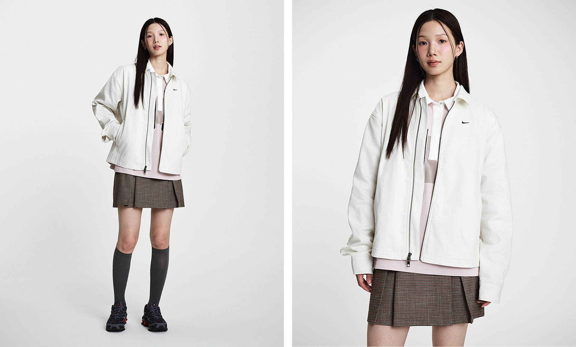 다용도로 활용할 수 있는 양방향 지퍼, 뒷면 주름, 커프스의 플래킷이 세련된 마무리를 선사합니다.